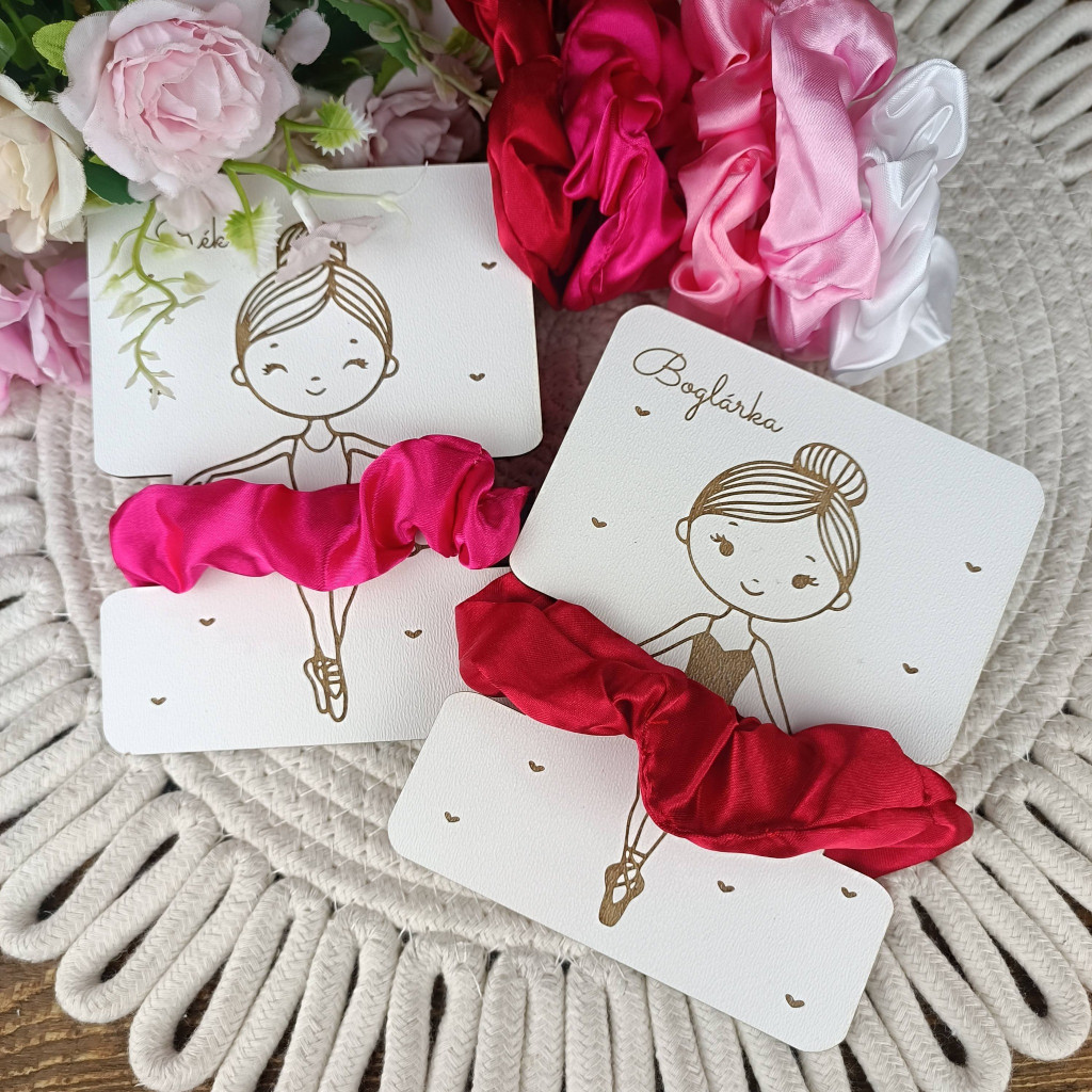 Nőnapi ajándék kislányoknak – szatén hajgumi (ovis jellel is kérhető)