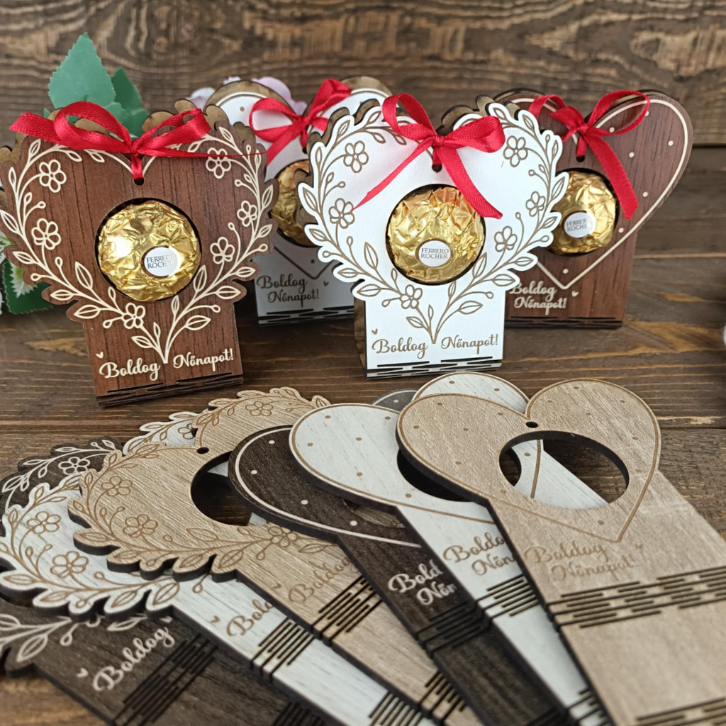 - Terméktípus: fa nőnapi csokitartó dekoráció