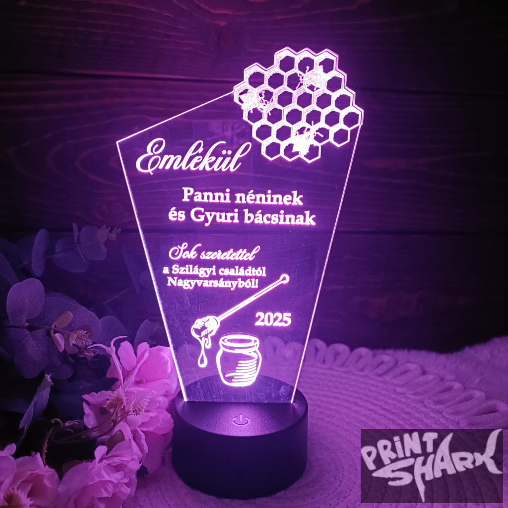 Fényemlék LED talppal méhészes – egyedi, személyre szabható ajándék. Kérheted névvel, dátummal vagy saját felirattal, hogy igazán személyes legyen. Tökéletes választás fényemlék led talppal alkalmakra is. Gyors rendelés, igényes kivitel a Printsharknál!