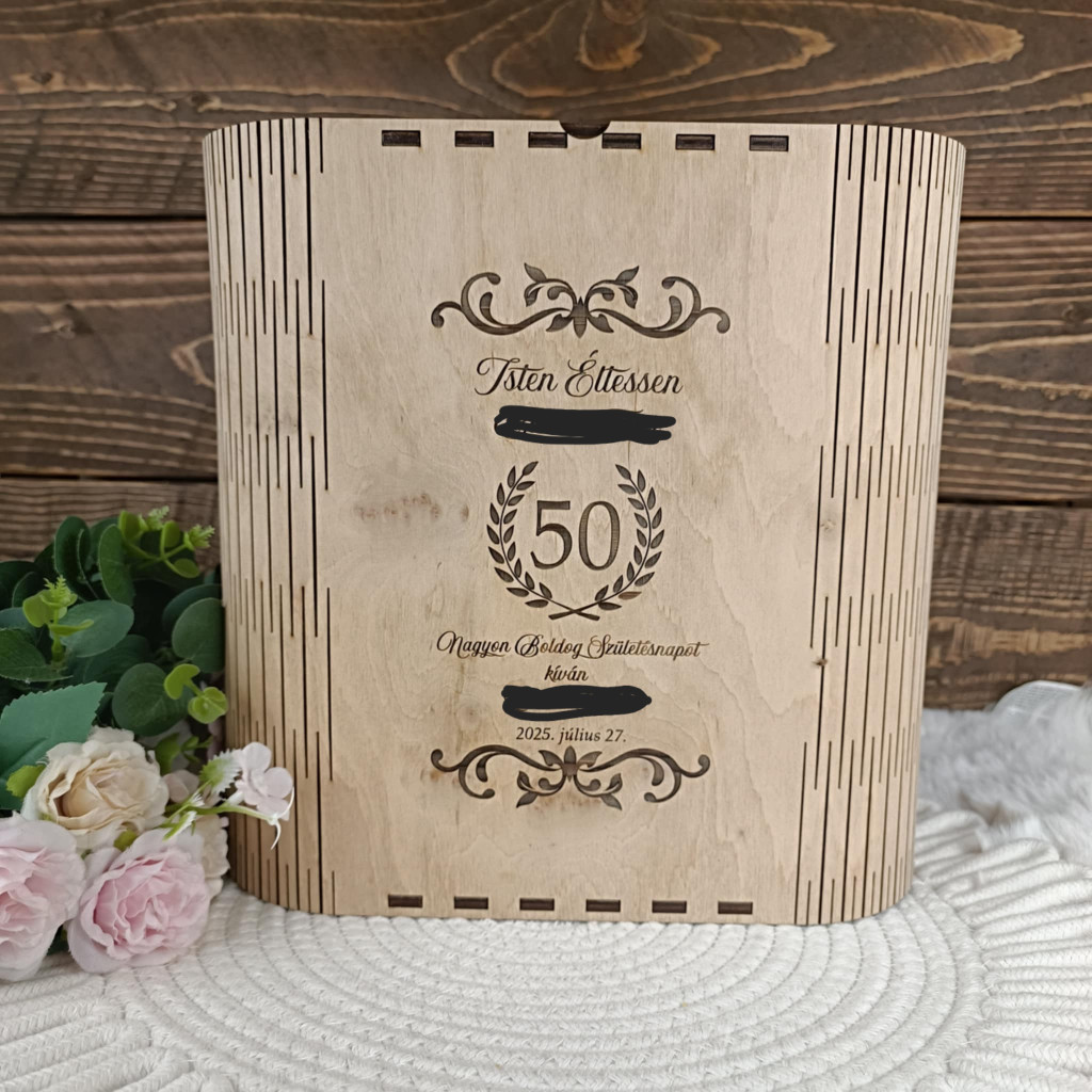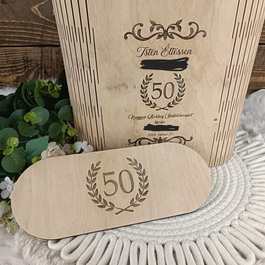 A dobozra kérhető gravírozás lehet például név, életkor, dátum, rövid idézet vagy személyes üzenet. Így minden darab egyedi, és valóban az alkalomhoz illő ajándékká válik.